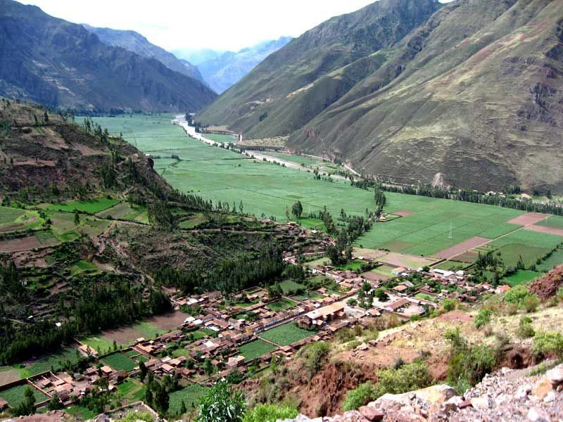 Город расположен в районе долины Урубамба в Андах на высоте более 3500 метров над уровнем моря